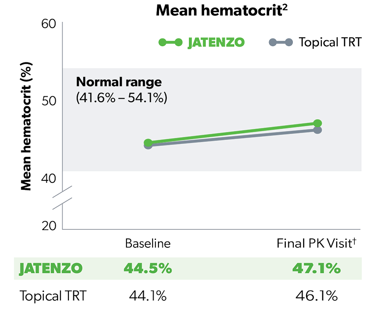 97% of JATENZO Patients’ Hematocrit Levels Stayed Within Normal Range3